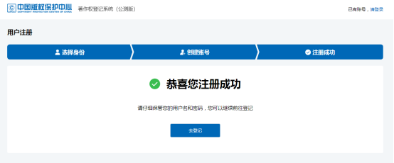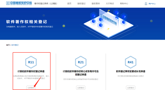 点击《计算机软件著作权登记申请》的《立即登记》:
