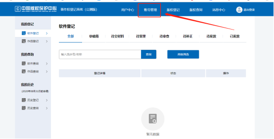 登陆账号密码,点击右上角《用户中心》,进入后点击《账号管理》: